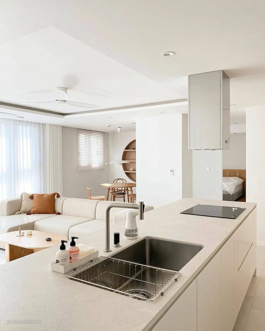 简约奶白色小家,光影与线条交汇,还原生活本该有的纯粹