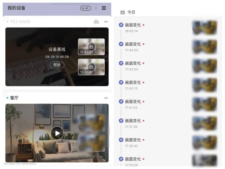 平时除了可以直接点击查看实时录像之外,可以通过画面变化提醒,随时查看录像。