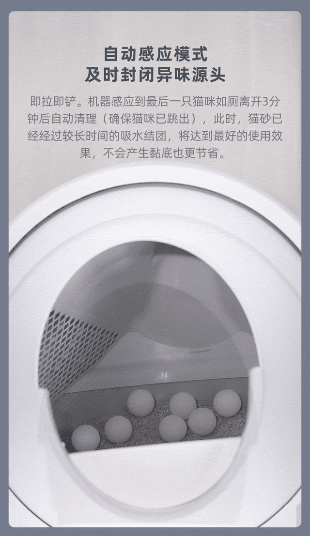 智能猫砂盆很适合多猫家庭使用,解放铲屎官的双手,不用去经常清理难闻的粑粑。它的垃圾仓容量有13L,一只猫的可以用14天左右。另外我有注意到,这款猫砂盆设计了多种防卡猫的设计,比如运行中有猫进入会自动停止,漏沙口有防夹感应,金字塔造型也更加稳定,安全性来说还是很不错的.