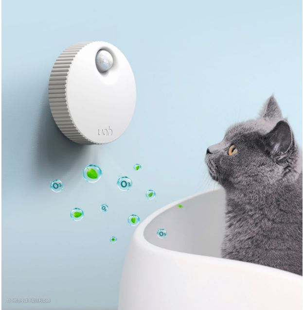 对异味比较敏感的铲屎官可以试试智能除臭器,把放在猫砂盆附近使用,通过释放活氧和负离子,能够分解猫便中产生臭味的物质,达到灭菌除味的效果。