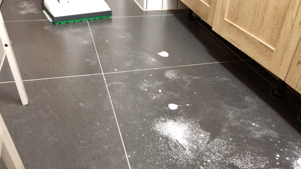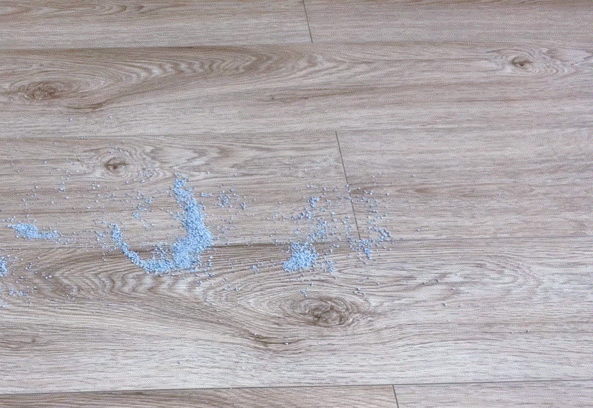 ▼新一从猫砂盆带出来的小颗粒的猫砂,也能轻松应对。