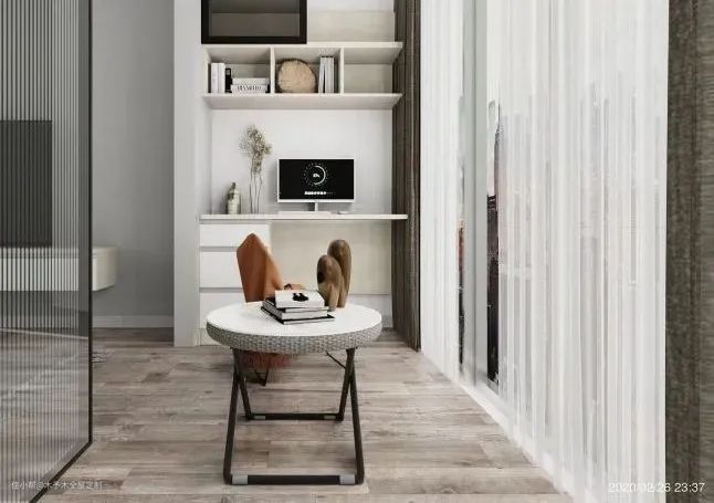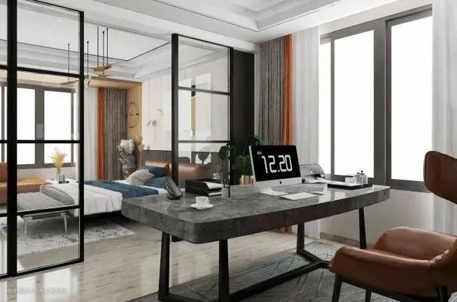 ▲ 经常在家办公,但又没有独立书房的朋友,就从卧室里辟出来一个吧。隔断选择玻璃推拉门,不会影响两边空间的采光,整体通透明亮。