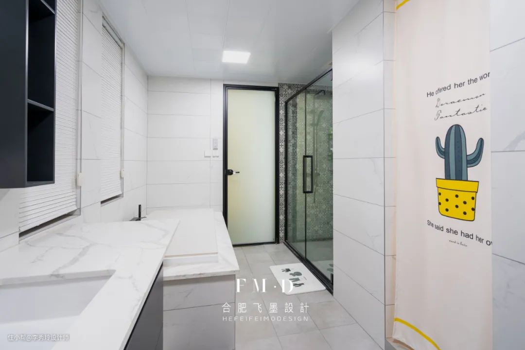 两个卫生间都选择:台盆区+马桶区+淋浴区,最实用也最简单的布局。