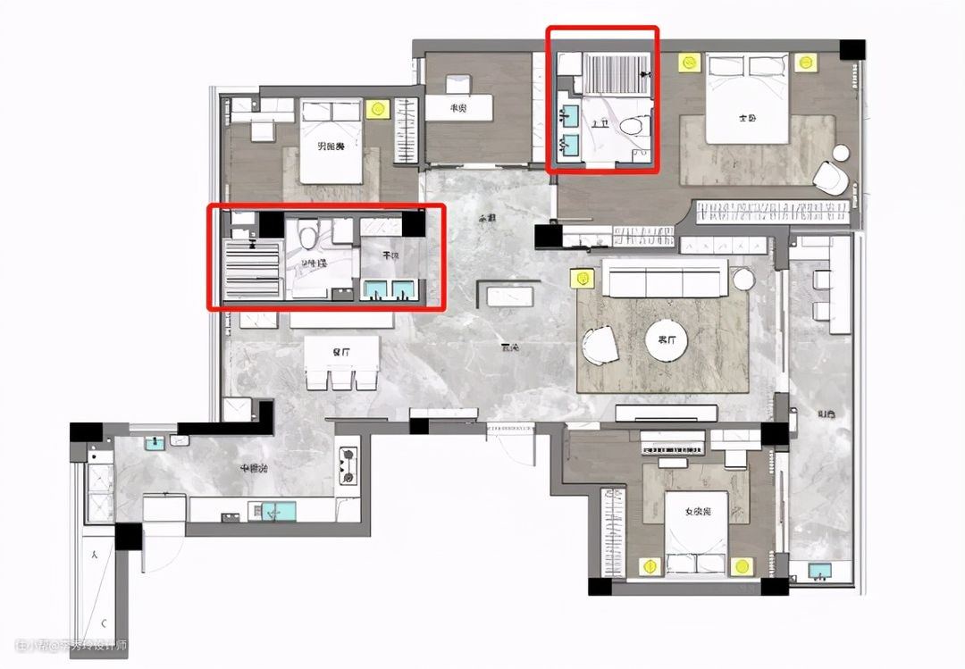 两个卫生间,布局可以好好规划下,才不会浪费。