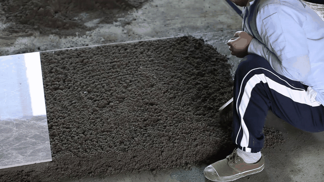 使用水泥和细沙,加水调成砂浆,在铺贴位置打底,将瓷砖放置在对应位置,使用橡胶锤敲平,随后取下瓷砖,在瓷砖背面刷一层纯水泥浆,用灰刀刮抹,最后将瓷砖放回垫高层。