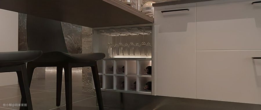 根据个人喜欢设计的专门的酒柜,很适合有存酒习惯的家庭,在使用上更便捷,收纳一目了然。