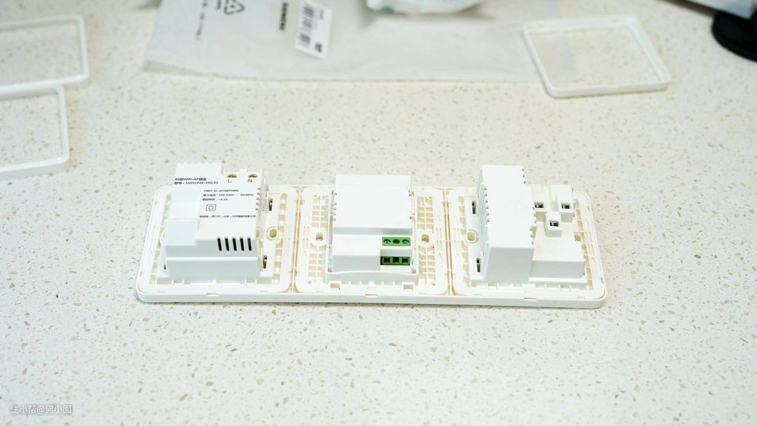 根本没地方,除非是用墙面魔方扩展或者接插线板,插线板实在难看,放那里还影响扫地机工作,魔方谁用谁知道,插稍微大一点的插头就完全不行,脑筋一转就想到了 AP面板, AP面板不增加电位的占用,直接可以替换原有的网络插电位,实现有线转无线信号的功能,还没有路由器杂乱的走线,供电依靠原本预埋的零火线,解决无线信号无法覆盖的问题,棒棒哒