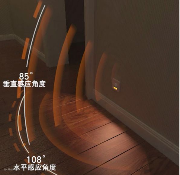 这款小夜灯是人体红外感应式的,人来即亮人走即灭,感应距离5m左右