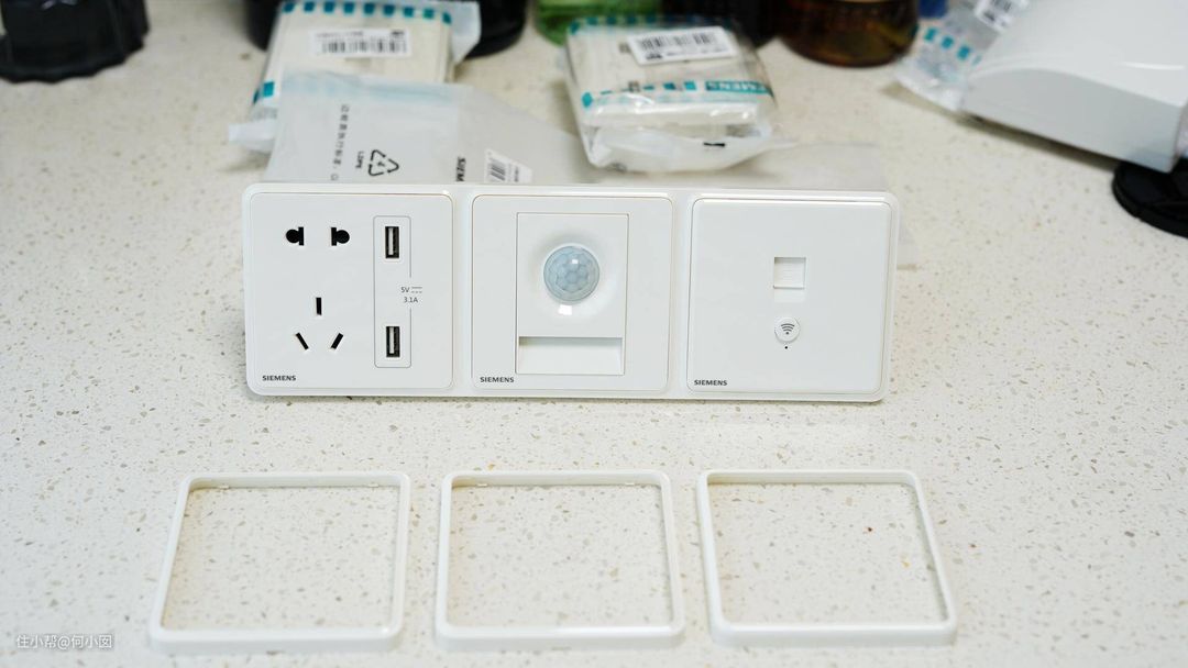 同时下单了几款西门子别的产品,有两个无线WiFi AP面板,两个双USB带五孔插座,一个人体红外感应小夜灯,一个防溅盒,和一个三位连体边框,就一起来看看测评吧