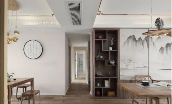 新中式装修风格:南京莱蒙水榭阳,120平新中式装修案例,家具用的红木鸡翅木。