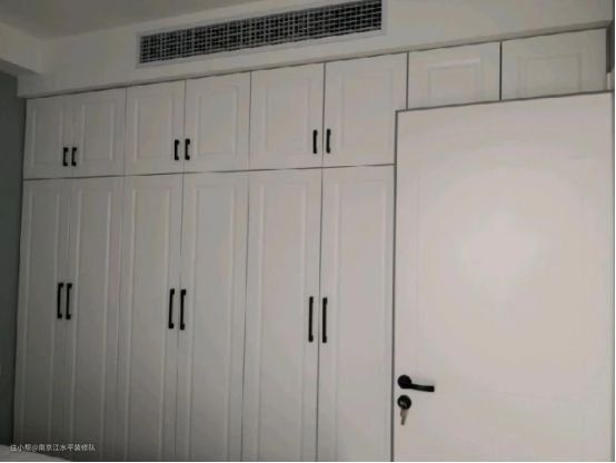 简约装修风格实景案例:南京板桥和昌湾景,88平装修案例。所有柜体现场做,鞋柜衣柜造型柜门现场做,背景墙柜门,电视柜柜门定制,半包装修6万整体15万。