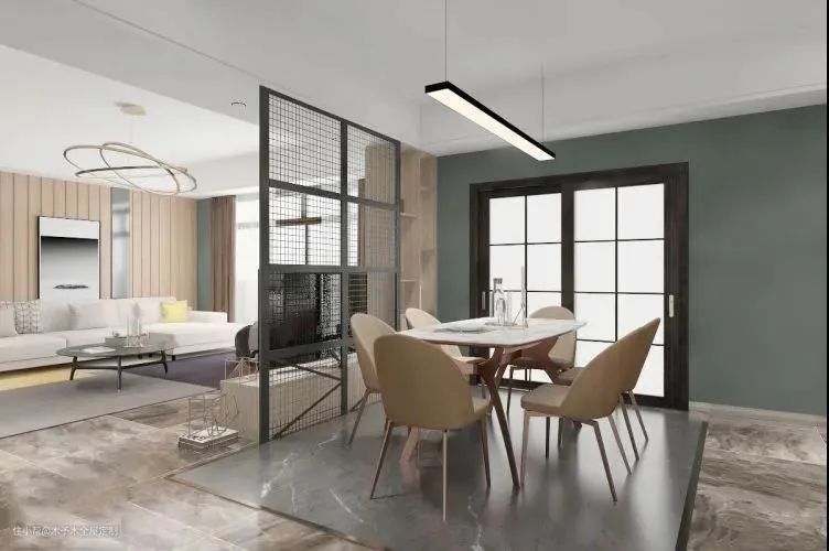 ▲墙面隔断客餐厅,墙高建议和靠背沙发等高or高出一点。