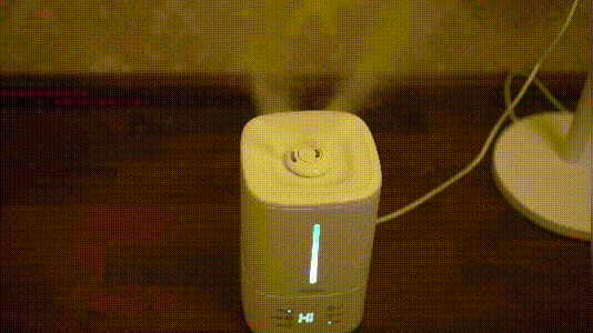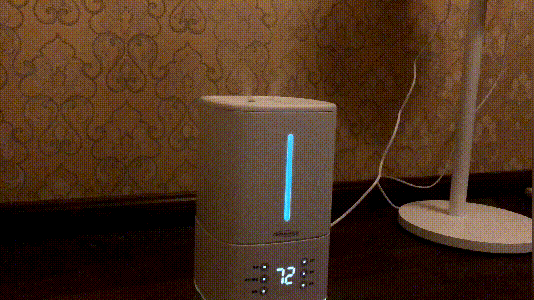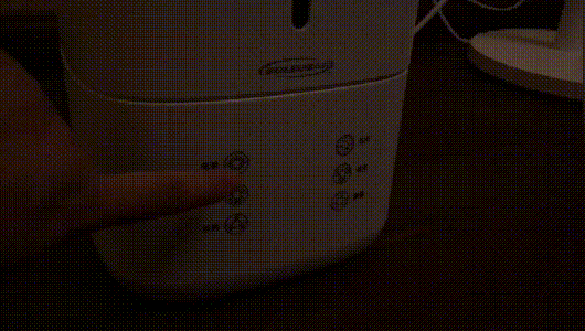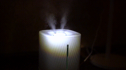 正好,当天晚上我就开启了小白鲸的热雾功能!看动图,两秒出热雾不是梦,很明显可以看到打开加热之后几秒内温度有明显上升!听说其他有这个功能热雾功能的加湿器,都需要5-10分钟才能出热雾呢