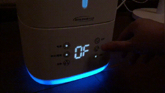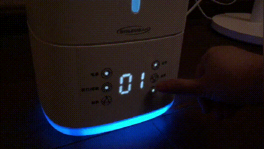 底座是这款加湿器的核心,控制区集成在这个部分,分别可以控制开关机,夜灯,加热,定时,湿度和雾量