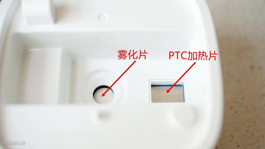 这个两个金属部分,中间的是雾化片,喷雾就是在这里产生,右边就是管雾气加热的PTC加热片了