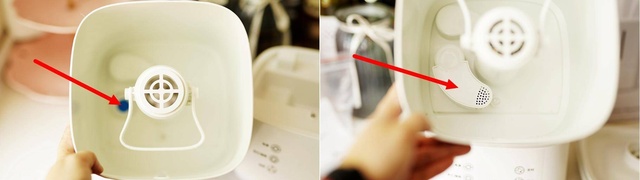 这款加湿器的名字叫做小白鲸,我想应该是源于它像鲸鱼一样的喷雾口吧,这款加湿器是双喷雾口,可以成180度向两个方向喷出雾气,提高加湿效率,而老加湿器只有一个喷雾口