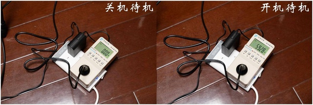 关机待机下功耗小于0.5W,低于表最小测量值范围。开机后待机功耗59.28W。