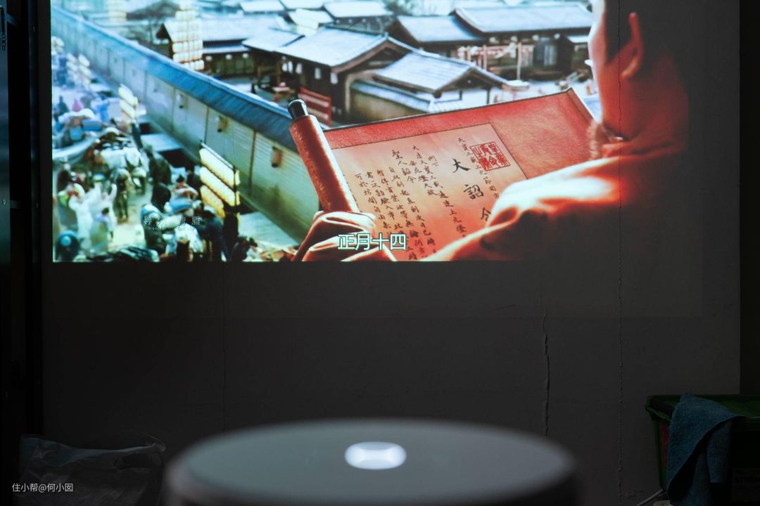 除了可以吊装、幕布使用以外,最重要的是只要白墙就可以看电影,暂时我还没有购入幕布的计划,在家里主要是用于卧式直接投影白墙,就可以追剧,看电影