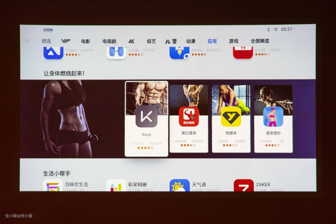 应用频道媲美电脑的操作,各种软件资源也很丰富,大热的Keep也在里面,直接用投影在小房间做keep体验应该会比用手机来得好很多吧