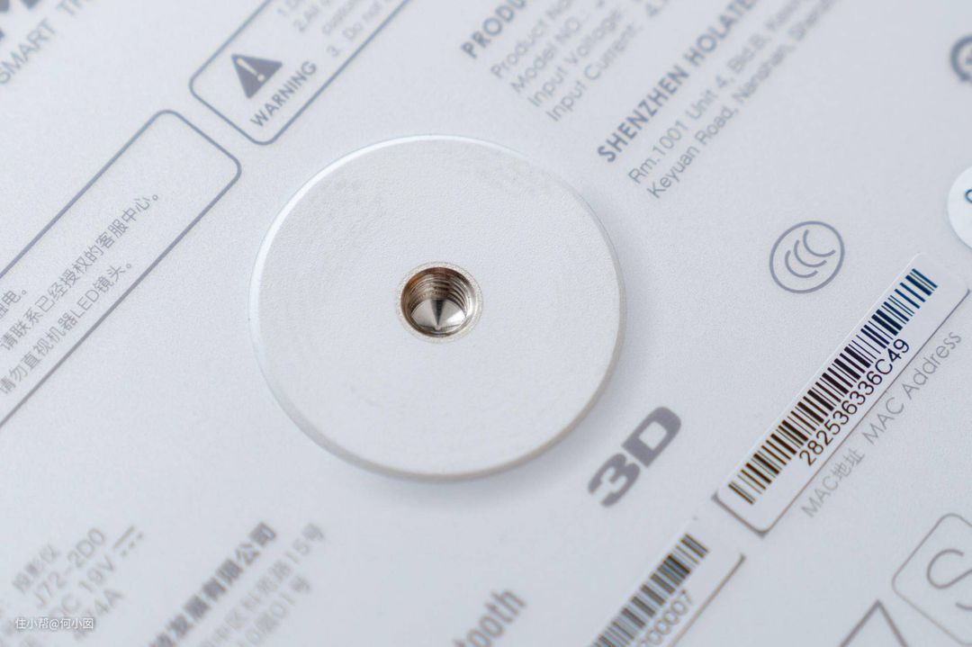 相比普通投影仪需要托盘或者三点式支架,这个投影仪只需要一个常见的三脚架就可以支撑。