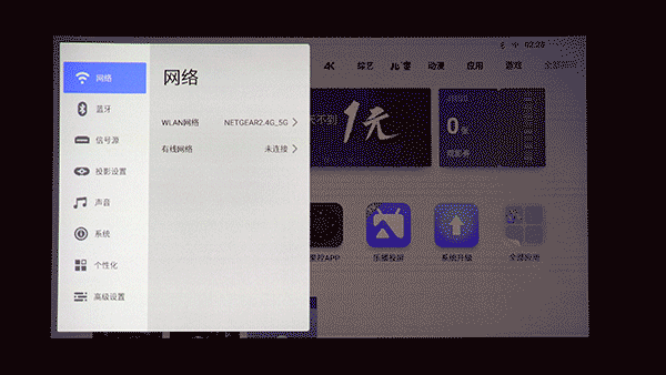 在设置里面还可以进行信号源的切换,如果有需要可以用笔记本、手机、相机等设备投影