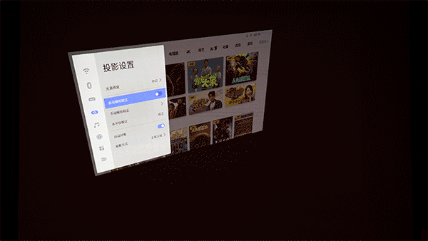 在投影仪设置里面可以支持自动梯形校正和自动对焦,这个功能感觉很实用,搬动,或者调整投影仪位置的时候,屏幕会自动校正和对焦,完全不需要手动干预