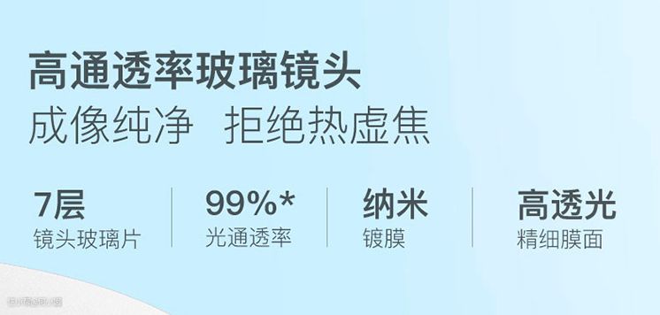 镜头是高通透率的玻璃镜头,光通透率达到99%,在长时间使用下不管是耐用性还是清晰度上都比传统的树脂镜头好了太多