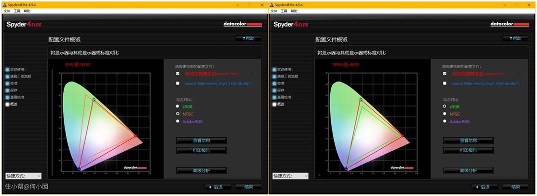 sRGB 100%,很不错的数值。NTSC也有81%,看来不管是色域还是sRGB的数值都与官方的宣传匹配