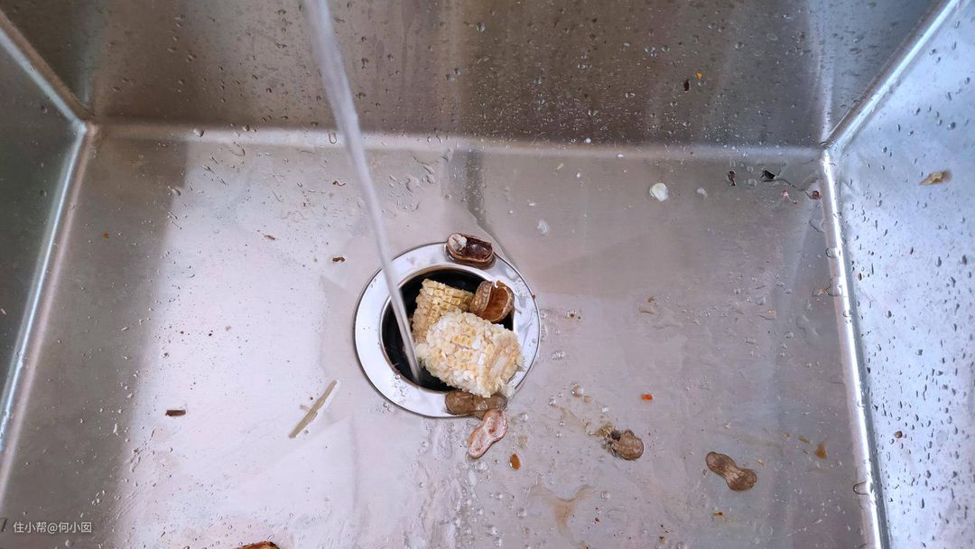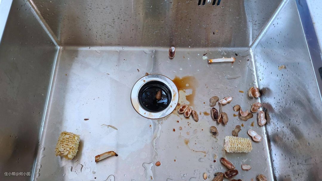 这里提醒一下,垃圾处理器不可以处理什么垃圾,一定要注意,猪大棒骨,牛骨头,高纤维的厨余垃圾,比如玉米须,玉米叶灯,就不要为难它了,普通小块的猪排骨,鸡鸭兔骨可以处理的