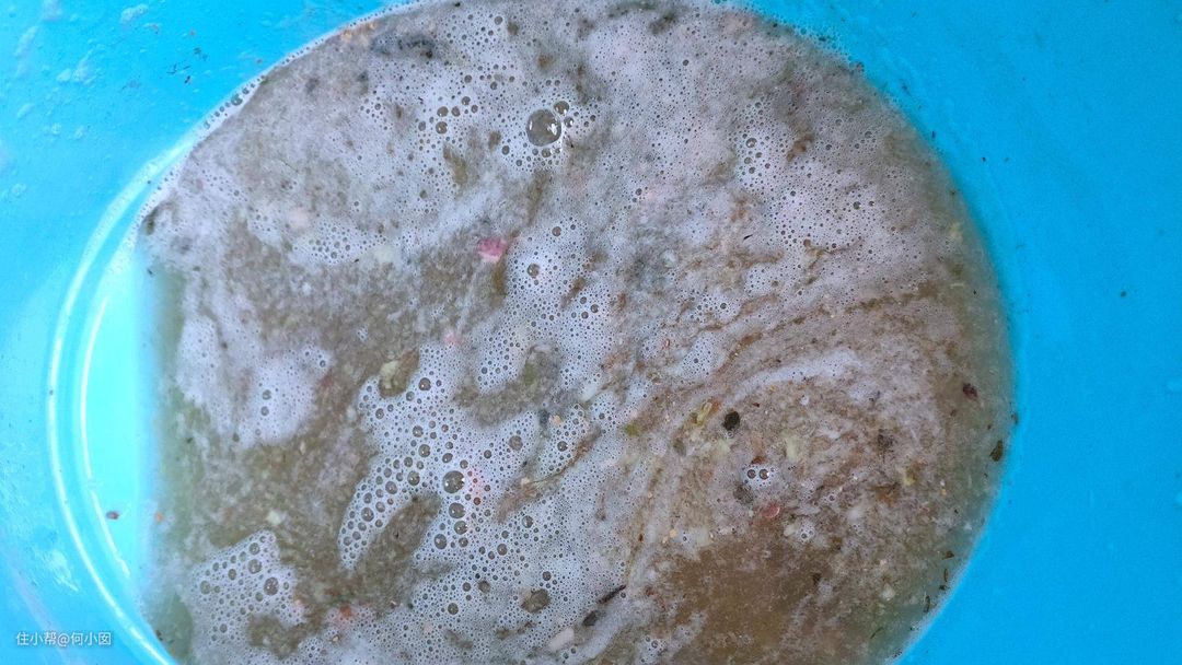 捞起来的时候,心里还是有点障碍的,觉得有点点恶心,其实并不脏,这些皮都打得很碎了