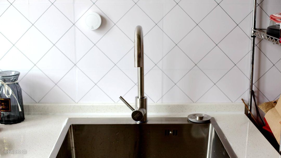 安装就比较简单了,原配有3M胶贴,直接贴到顺手的墙上就行了,建议不要放在水槽旁边,容易被误操作,平时使用的时候也要注意防水,不能大量的淋水或者浸水,可以正常打扫擦拭,所以最好还是贴在墙上