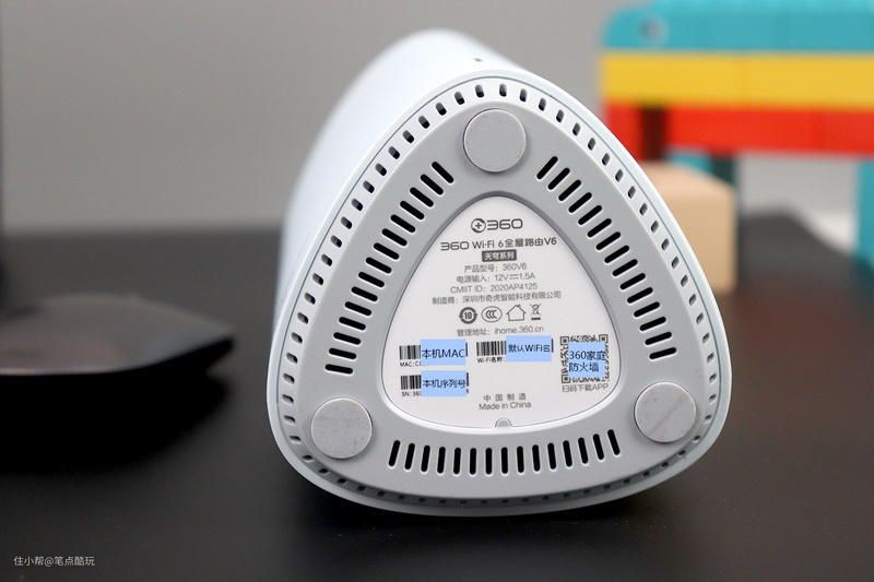 路由器采用被动散热设计,底部3个硅胶脚垫,增加放置稳定、防滑的同时,也将由底部密集的散热孔进风、到路由器上部出风口的自然散热保持通畅。