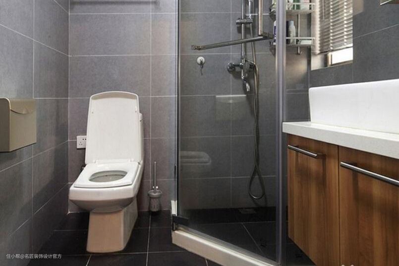 而如果家里比较喜欢做玻璃隔断的话,那就是淋浴房了,一般来说半隔断是较为常见的,虽然挡水条能挡住地面上的水外流,但水外溅的问题,还是较难解决。这样的话,最好能把马桶的位置放在玻璃隔断的一段,不宜溅上水。