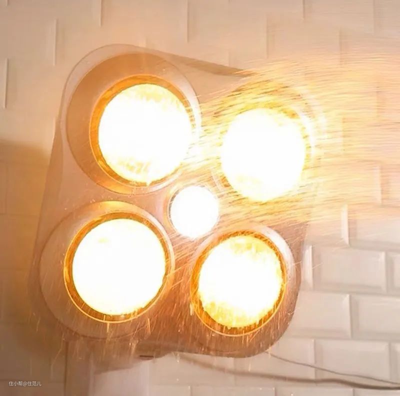这种浴霸灯技术上非常简单,2-4个红外灯泡组成,灯泡会发热。