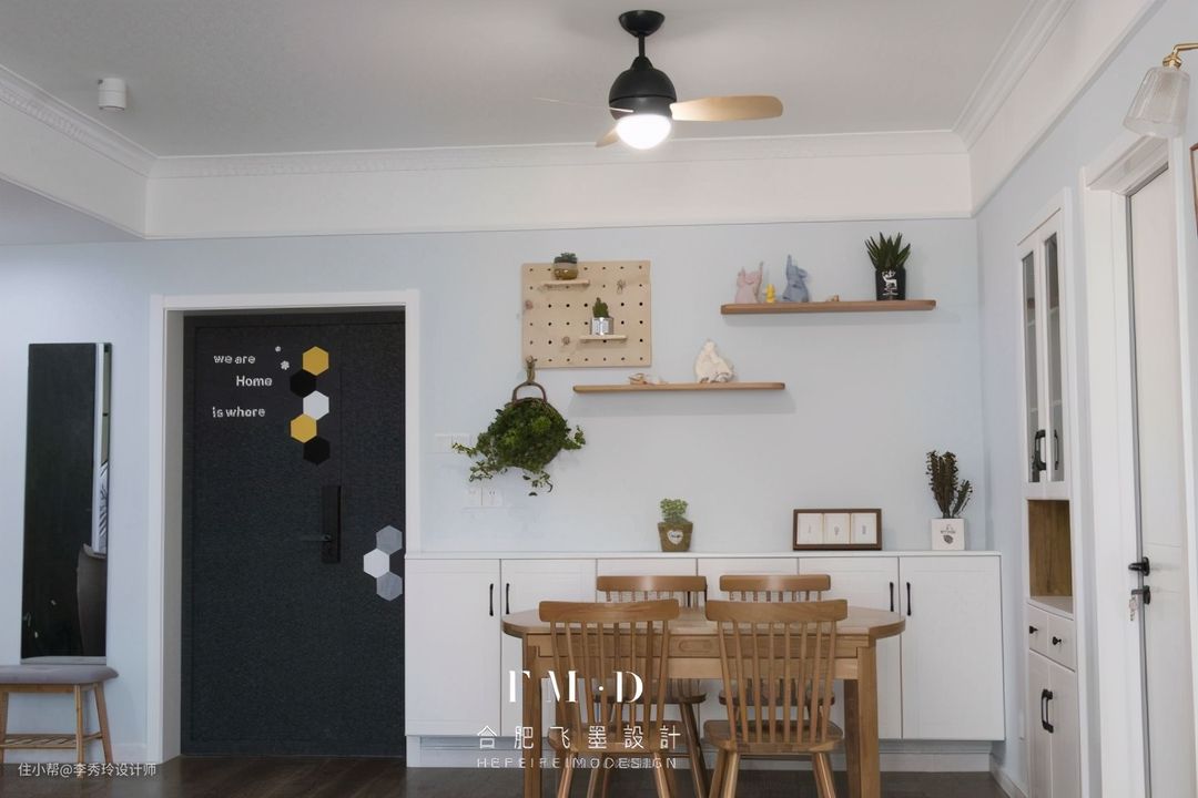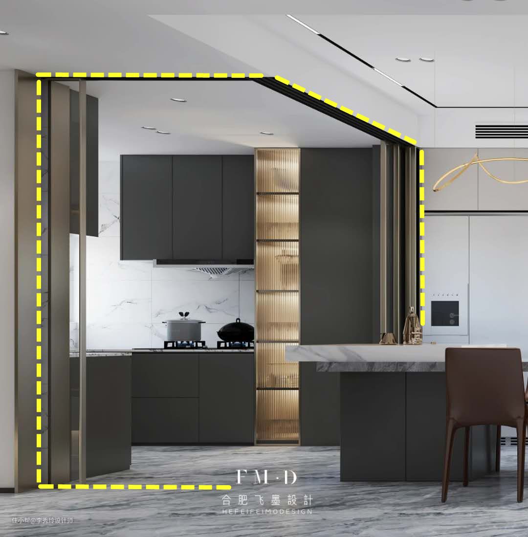 另外原始厨房门洞朝西墙,无玄关且采光差,重新调整后,门洞调整向南,朝向客餐厅,采光变好,且增加玄关功能。
