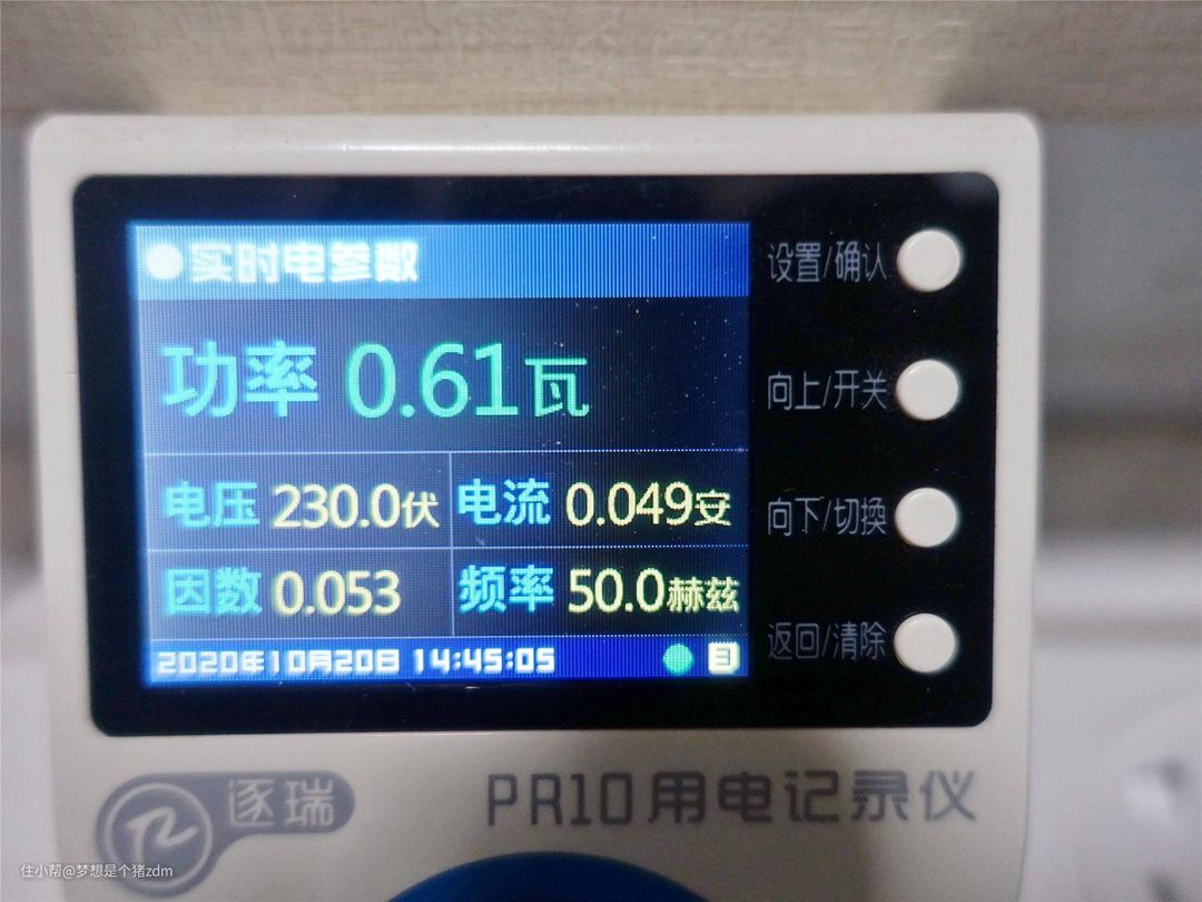 先看待机功率,在不对净水器做任何操作的情况下,这款净水器待机功率仅仅只有0.61W,好吧,这个功率基本上可以忽略不计了。