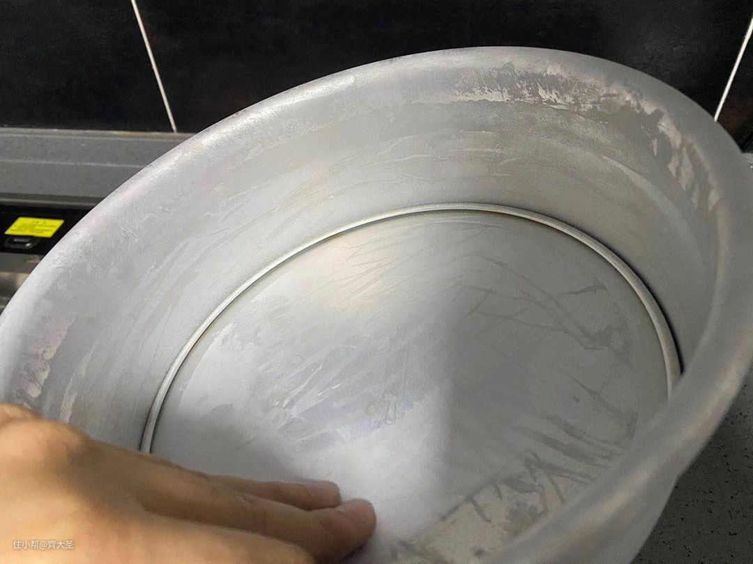 - 铝制品及银器:建议使用后立即用清水洗净,手工擦干,否则会泛白或产生斑点及污痕,下图就是我洗废的一个铝制的蛋糕模具↓