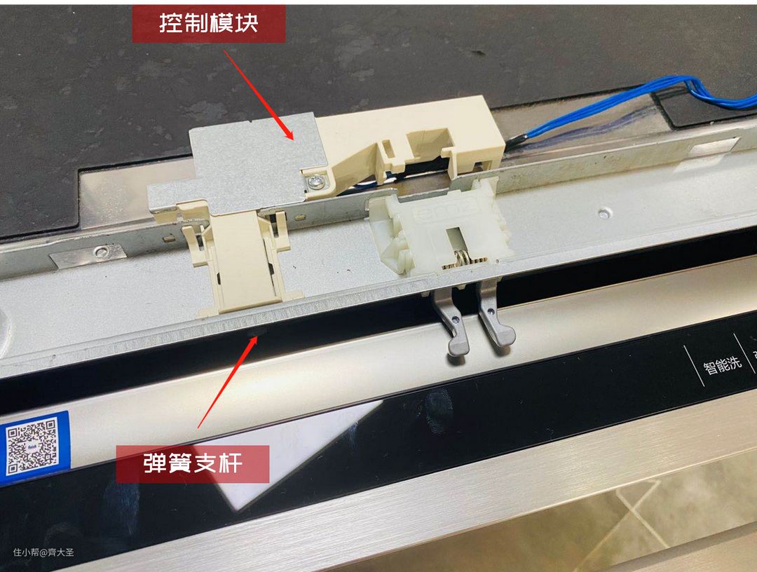 海尔在机器顶部设计了弹簧支杆控制模块,当主清洗程序完成后支杆将顶盖面板,完成换气