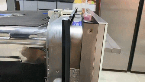 这一步有个点需要注意,如果是全嵌式,可能要定制一块橱柜同材质的门板。如下图这种↓