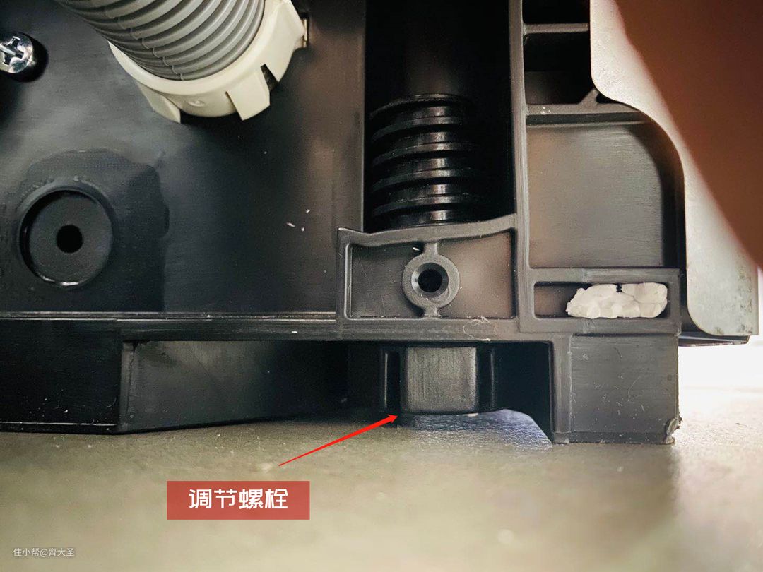 在洗碗机底部四角均设置了调节螺栓,可以用来调整洗碗机的高度及水平(顺时针方向升高、逆时针方向降低)