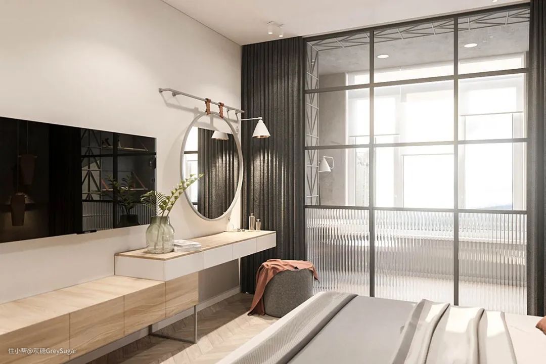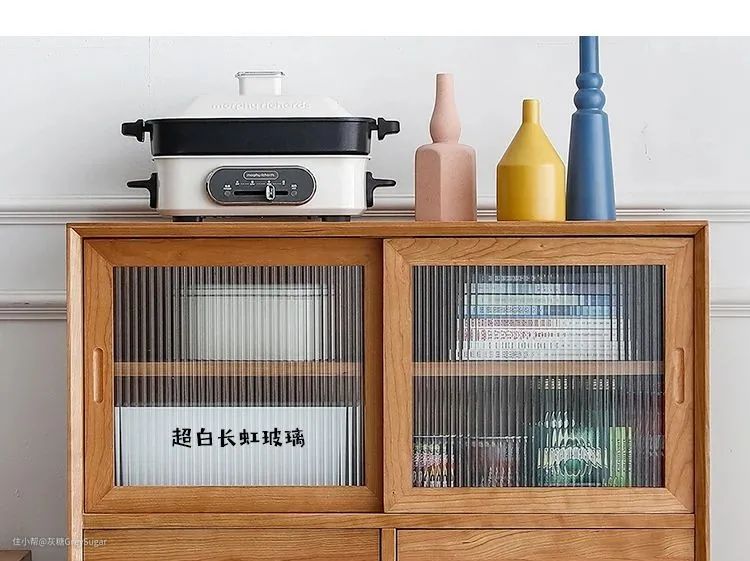 原色日式的家具,意式极简家具,都会用到压花玻璃这种元素,在本来空间就不大的小户型里,这种门板的使用,会很好的减少家具带来的厚重感。