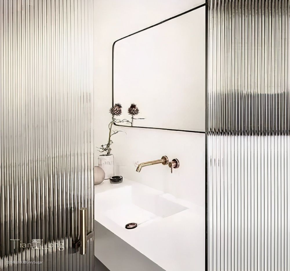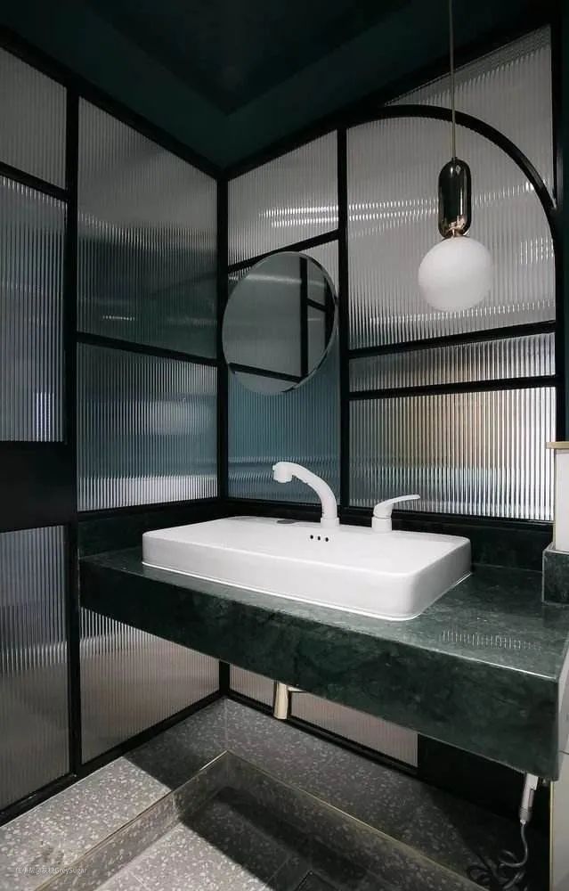 卫生间里的隔断也是可以大面积使用到压花玻璃的地方,也是可以营造一些简单的氛围感的地方,如果是直接使用透明的玻璃,总感觉没有什么安全感,虽然其实在卫生间里面,我们也不期待这种玻璃能带来多好的私密性。