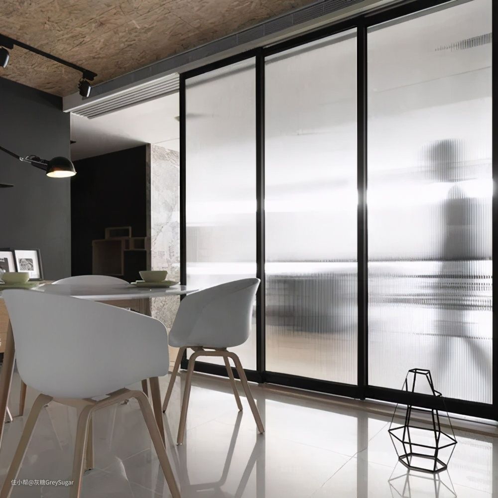 越简单明快的风格,就使用线条越简单的压花玻璃,比如长虹玻璃。