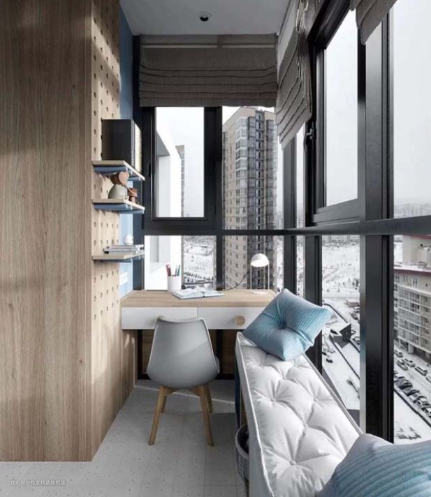 书房或工作区安静是必须的,阳台窗户最好选择断桥铝材质的框架和双层中空玻璃从而起到缓解噪音的作用。