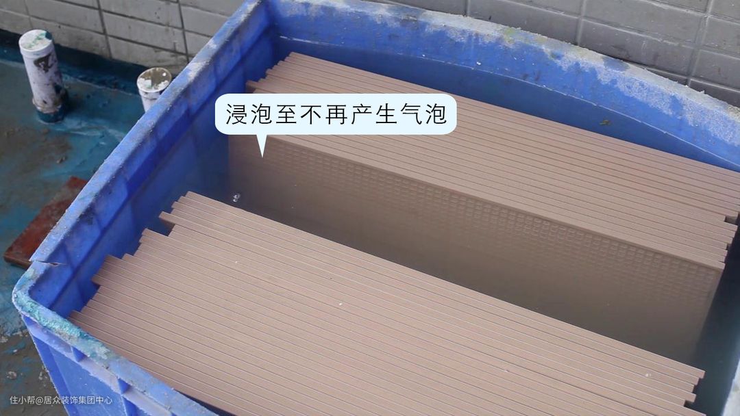 墙面砖铺贴前必须做浸水处理,一般需要放入水中浸泡两小时以上,直至不再产生气泡,这样可以避免瓷砖挂墙时脱落。