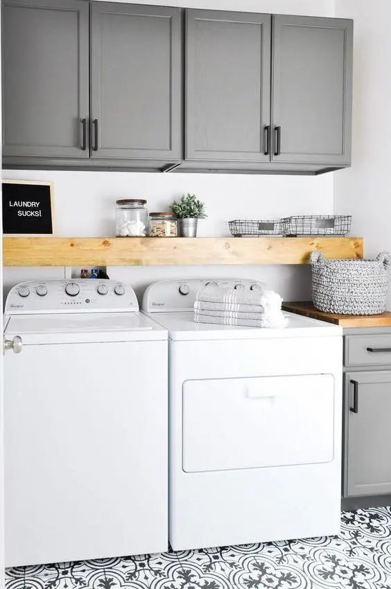 像吊柜加隔板的设计不仅适合用在洗衣机上方,也适用家里其它的功能区。