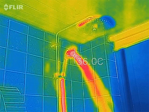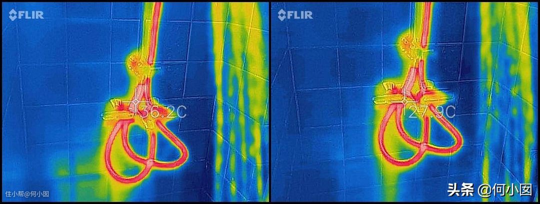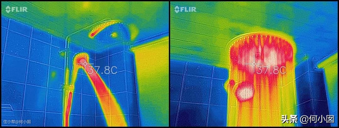 如果看热成像会更清楚,不管是手持还是顶喷都会恒定在38度左右的出水温度