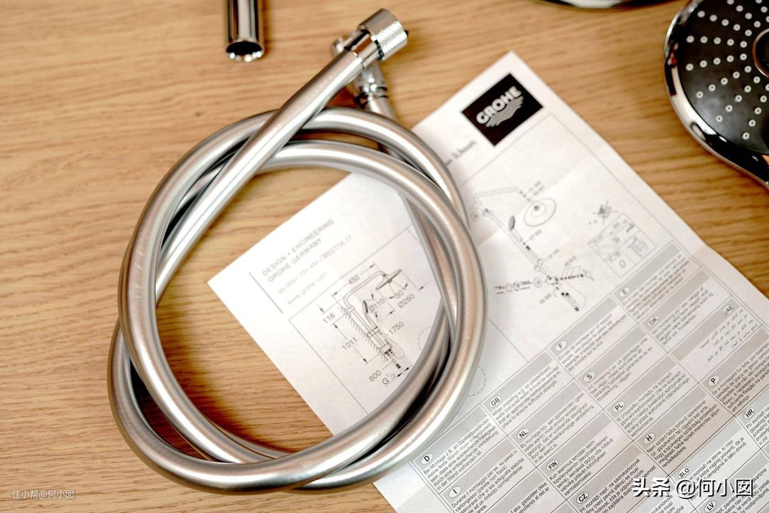 最后就接上软管大功告成,软管一共两根,一根接手持花洒,一根接顶喷花洒