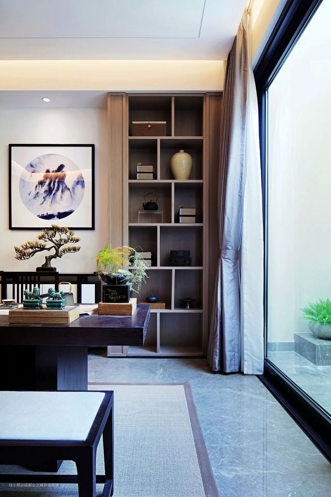 东方的水墨写意和着现代的简约利落,在诉求着同样的精神,除却繁冗唯有禅意风骨和智慧空间。