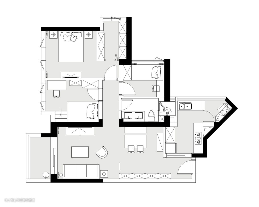 平面布局图 #三室二厅一厨一卫 #简约